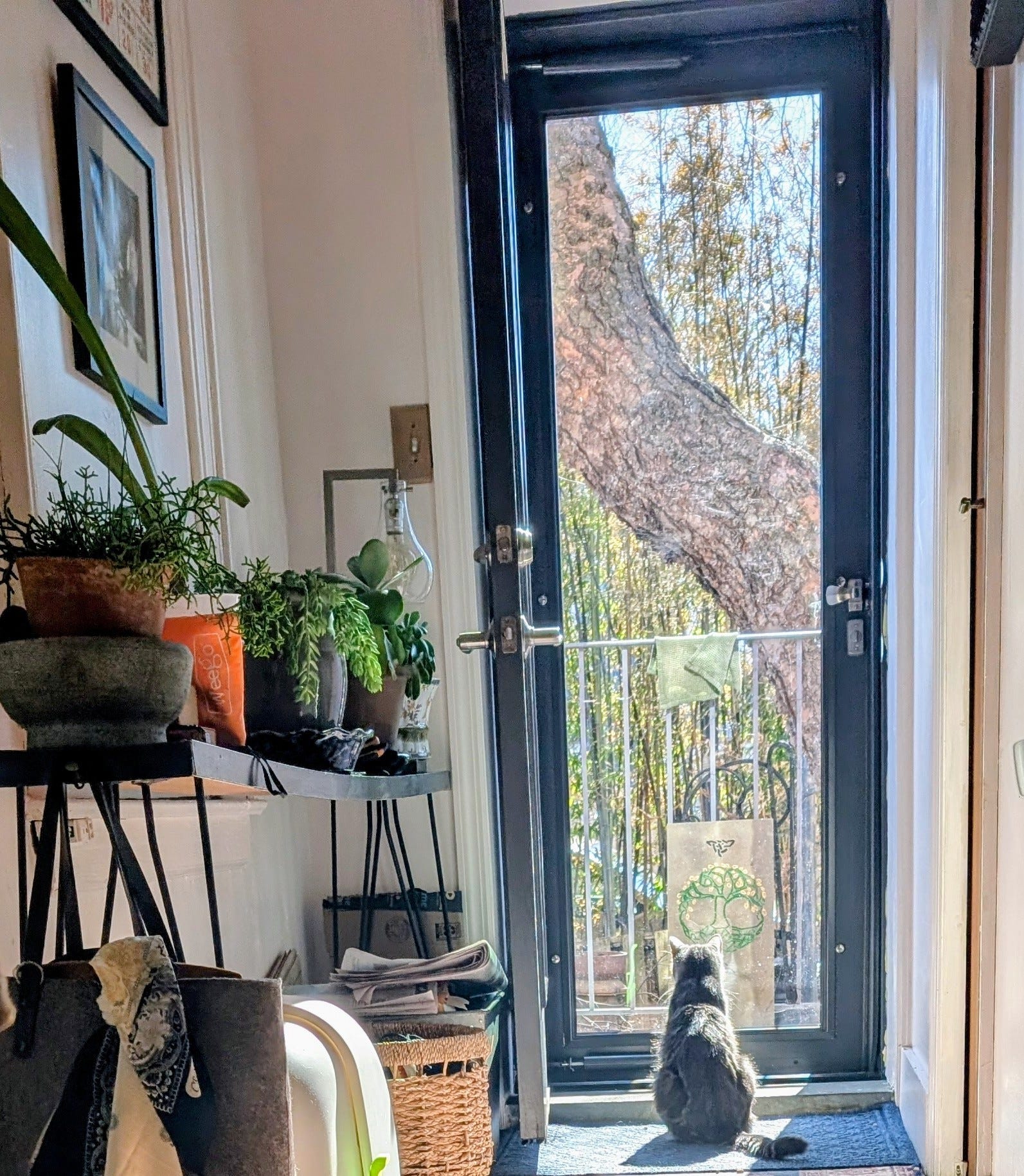 Sometimes the cat and I stand at the back door together and watch in silence. Merlin has recently tallied 126 different species–including one owl that kept me company during one long sleepless night.