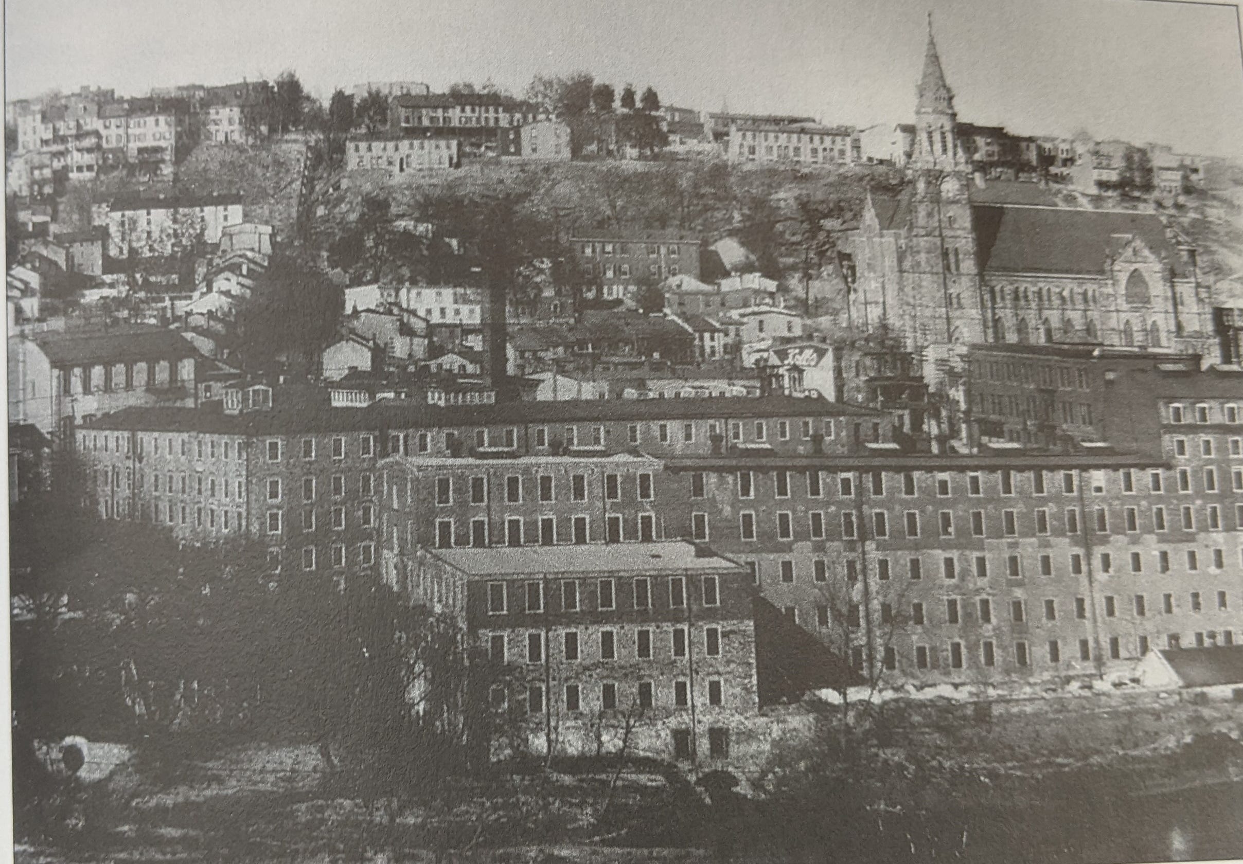 The yarn and wool mills that border Manayunk are separated from the Schuylkill River by a canal surveyed by George Washington and dug by Irish immigrants. The first mill was built in 1813. By the Civil War, there were an additional 15 spinning out textiles, wools, and paper. Each day, bales of finished merchandise were packed onto the canal’s barrages and floated through the locks on their way down to the Philadelphia wharves.