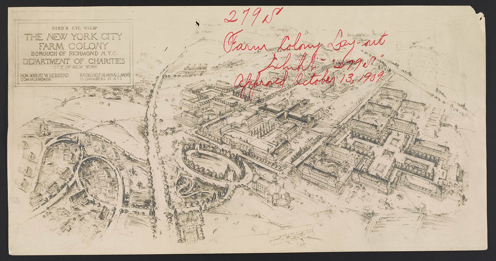 The Colony would be different, a utopian experiment located on rural Staten Island. People would live in houses surrounded by fertile farm land where they would grow different grains, fruits and vegetables for their own consumption. The surplus would be sold back to the city to cover the expense of operating the community and to feed the poor in the city. The city took control of the Colony in 1898. By the early 1900s, it housed 2,000 people.