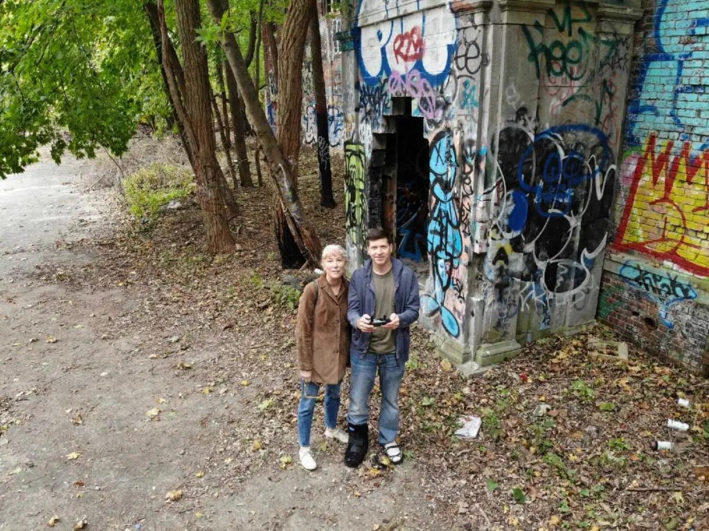 Tom and I didn’t believe in ghosts, but we were frightened by dirt bike riding teenagers. Otherwise, we wandered alone. He had a lot of fun flying his drone and testing out different ways to photograph the grounds. I went into some buildings than I should not have.