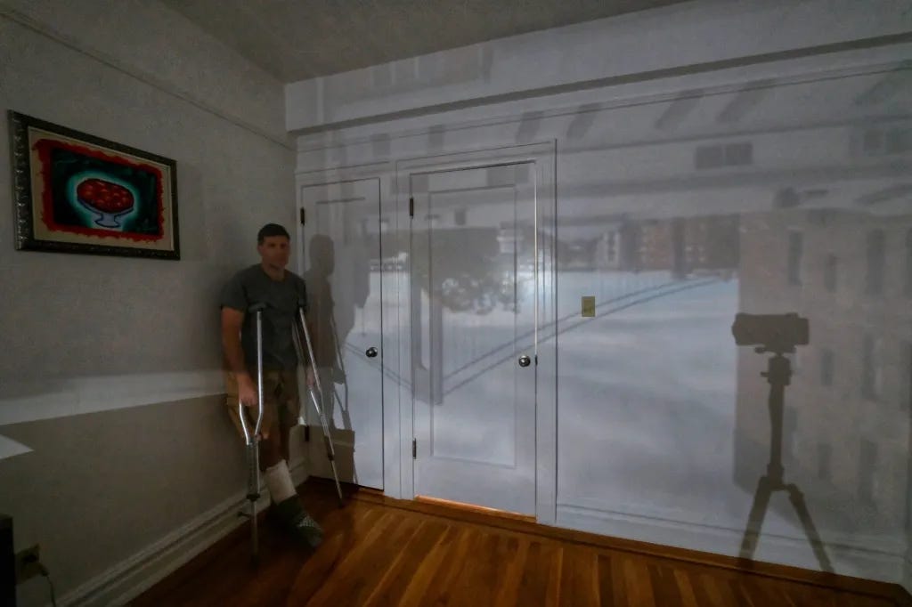 At last, I found Tom! He was sitting on the sill of a vacant window, looking through the photographs he had taken. His broken foot in its now dusty boot was propped up on his other leg. He’d never admit to me how much it was throbbing.